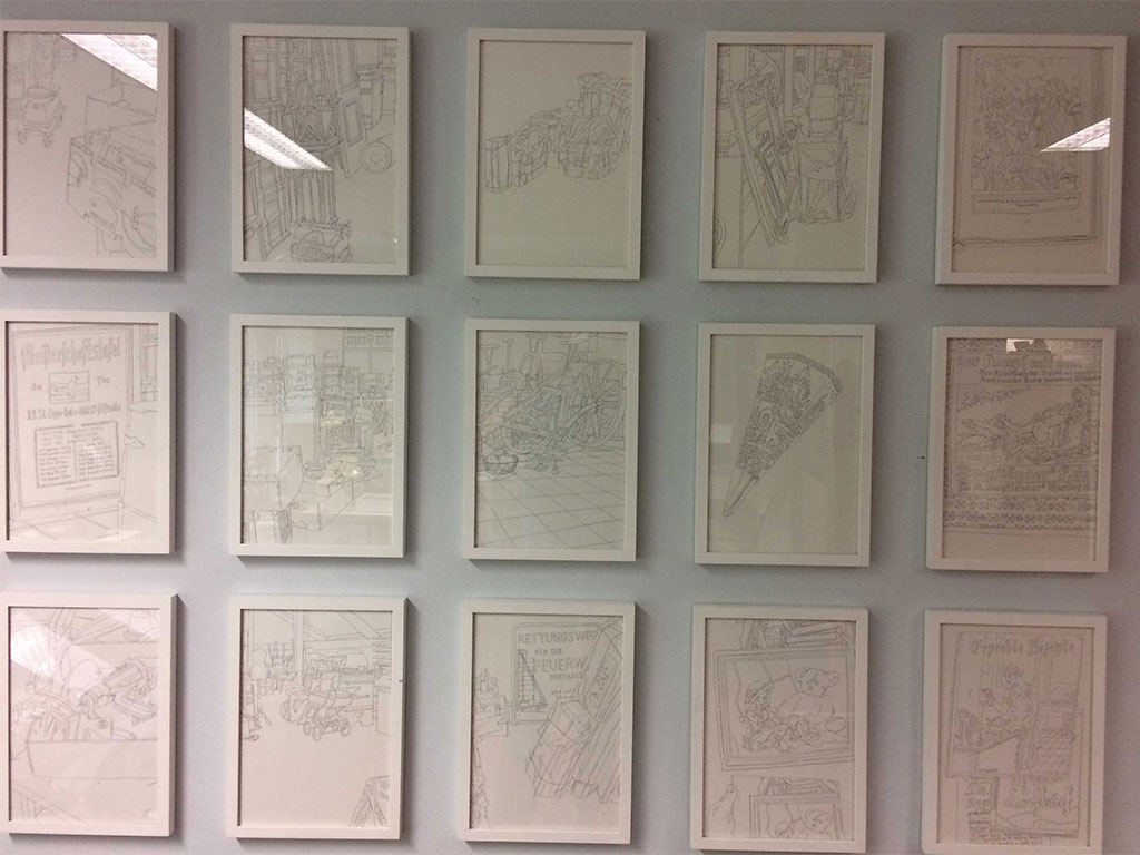 Beide Künstler beschäftigten sich mit den Dingen im Sammlungsbestand des Museums und präsentieren diese mit ihren künstlerischen Mitteln ganz anders, als in einer klassischen kulturhistorischen Patrick Borchers erstellte Zeichnungen und Videos, die auf den Ausstellungsort abgestimmt wurden. Matthias Beckmann hat sich in seinen Zeichnungen genau mit dem Ort „Museum der Stadt Lünen“ auseinandergesetzt.