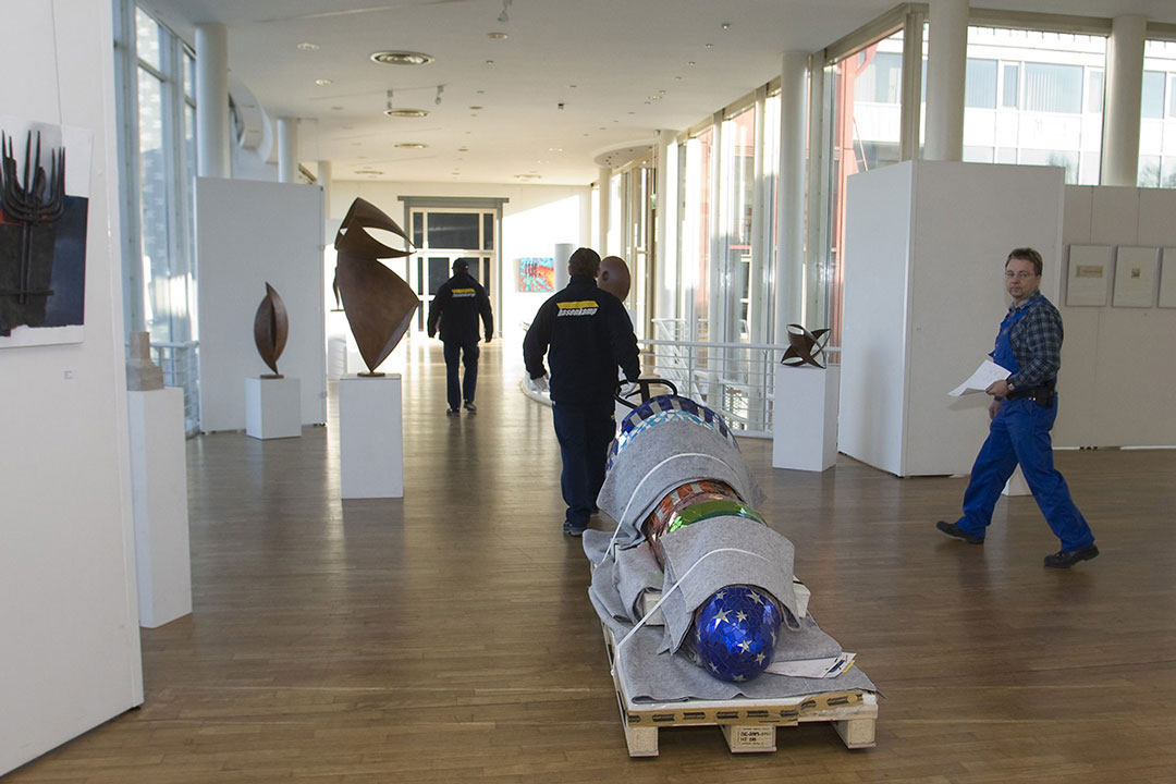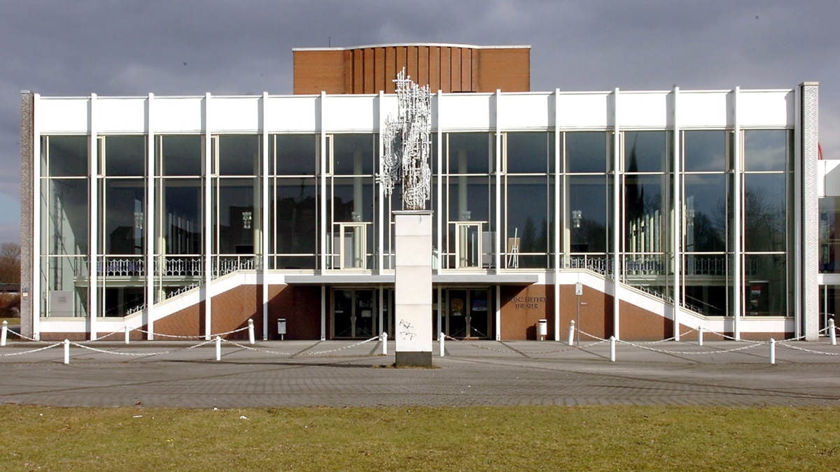 Im Heinz-Hilpert-Theater, das hier oben zu sehen ist, mit dem anschließenden Hansesaal, sind weitere Kunstobjekte während der Öffnungszeiten zu sehen, z. B.: